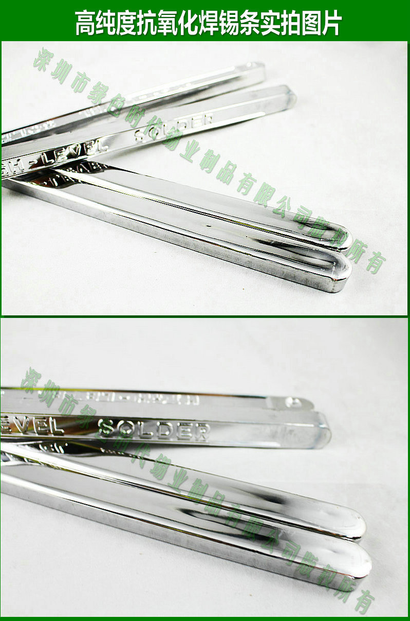 一、 深圳市綠色時代錫業(yè)制品有限公司所生産的焊錫條是我司集多年焊錫條的研究和實踐經(jīng)驗,結合現(xiàn)代電子行業(yè)的發(fā)展方向和高可靠性產品的要求,採用高純度的金屬純錫和純鉛,經(jīng)特殊的工藝製成的。它主要適用於各種波峰焊和用手工浸焊。